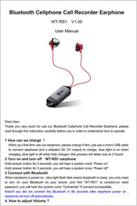 WT-102 Features Use Bluetooth to connected with mobile phone, then it can recording phone calls. Recording files saved in mobile phone automatically, did not upload