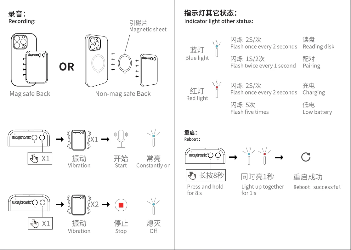 Convenient Operation Experience:One-button recording, haptic feedback. Single vibration to start, double vibration to stop. Advanced sound processing, clear within 10 meters.